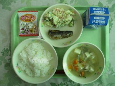 3日は、熊本県産品提供事業による天草真鯛の米粉唐揚げをいただきました。身の締まったおいしい真鯛でした。本日は、じゃがいもたっぷりのボリュームのある肉じゃがでしたが、全員完食でした。 すばらしい~。