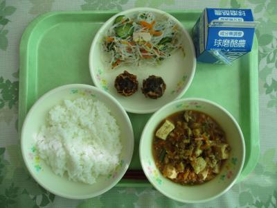 今日は、月曜日で中華の献立となっています。今日の献立には16品の食材(食品)が使用されています。1日30食品といわれていますが、今日の給食を完食することで16品摂取できました。栄養のバランスを考えるときに、給食の献立を参考にしていただけると幸いです。