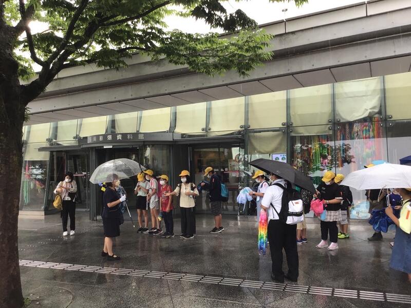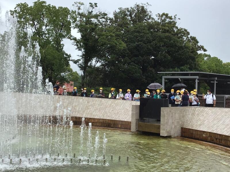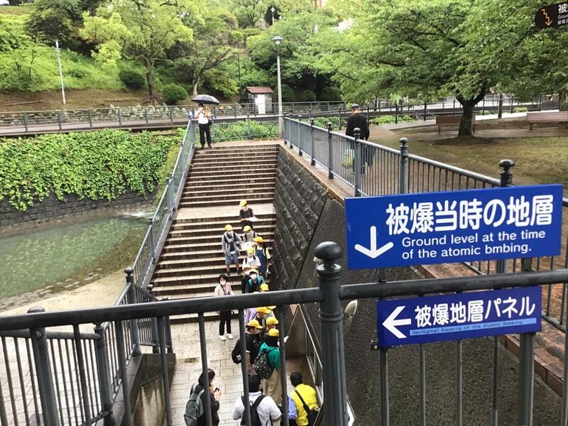 資料館見学後は、爆心地公園や防空壕跡などを見学しています。