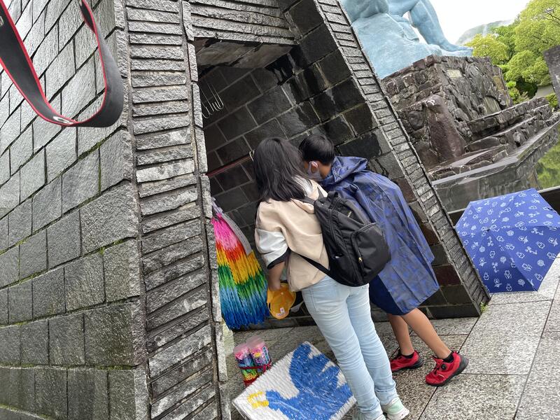 世界がもっと平和になるように、みんなの願いを込めて先羽鶴を奉納しました。