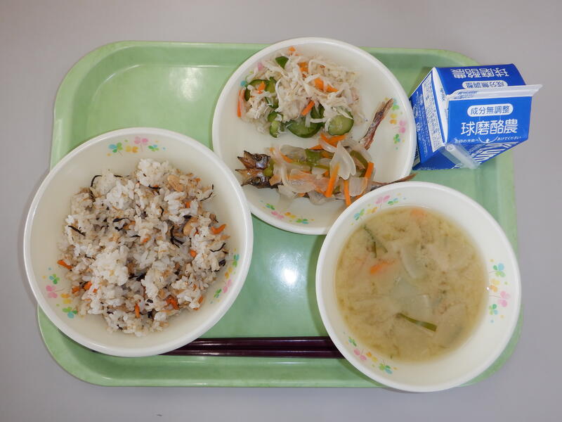 ・大豆入り ひじきごはん ・味噌汁 ・ししゃもの 南蛮漬け ・切干大根の 和え物 |