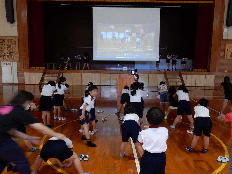 発表の最後には、朝の会に行っているストレッチを全校児童と一緒に行いました。