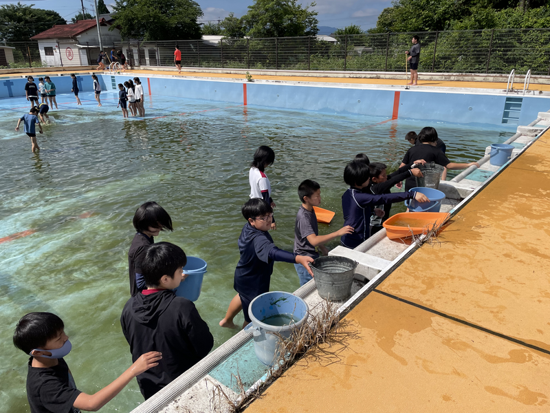 6月6日(火)にプール掃除を行いました。汚れていたプールも高学年の頑張りでピカピカになりました!