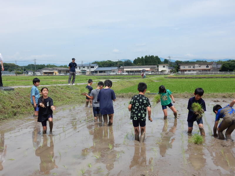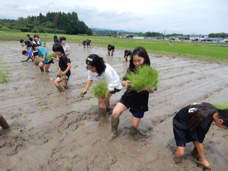 5年生の総合的な学習の時間で田植え体験をしました。