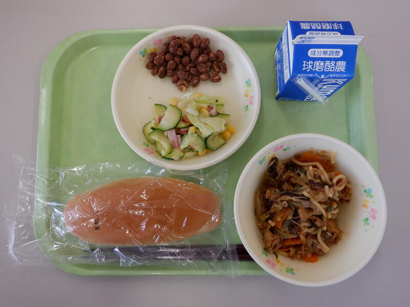 ・コッペパン ・焼きそば ・ズッキーニ のサラダ ・ココア豆 |
