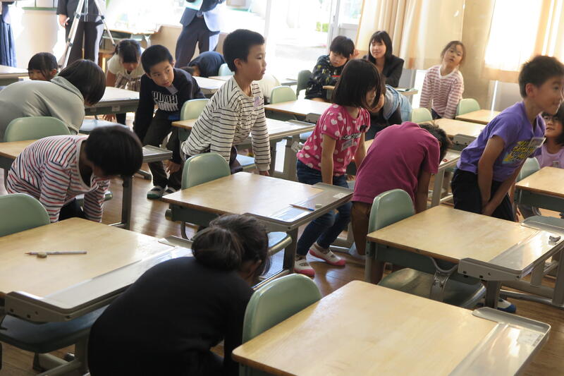 心臓マッサージの大変さに子供たちはとても驚いていました。