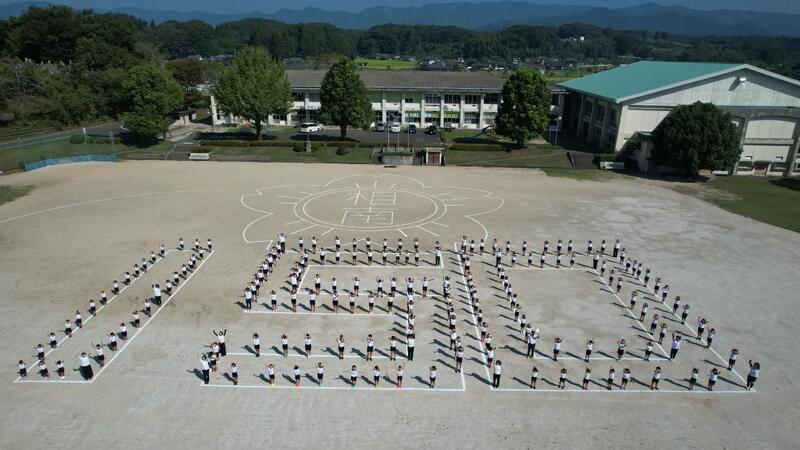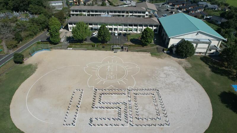 「150」の文字をみんなで並んでつくりました。みんなで協力して、とてもいい写真が撮れました。