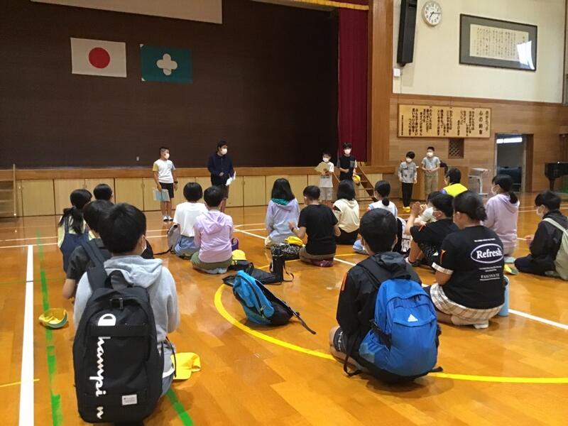 先週の6月2日(木)の1校時から3校時まで、晴天の中、新体力テストがありました。1年生と6年生、2年生と5年生、3年生と4年生がペアになり、グループごとに班長を中心に回っていきました。体育館では、上体起こしや長座体前屈・反復横跳びを行い、運動場では、50m走や立ち幅跳び・ソフトボール投げなどを行いました。上級生が下級生に優しく声をかけている姿が、見られました。昨年度より、記録が伸びたか楽しみです。