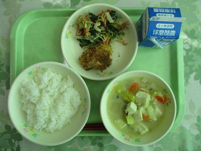 ・鶏肉のチーズパン粉焼き ・大豆のりんかけ