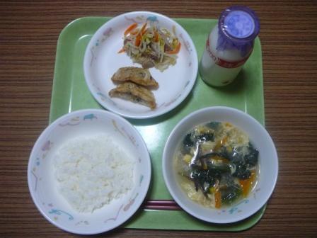 ごはん 中華風コーンスープ もやしのナムル 揚げぎょうざ 牛乳