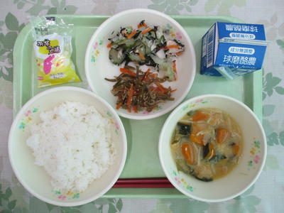 今日のポイントは、ひじきサラダです。給食では、ひじきをサラダの材料