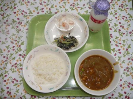 ごはん・チキンカレー・ひじきサラダ・フルーツヨーグルト・牛乳