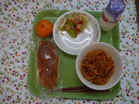 ミルクパン スパゲティナポリタン シーフードサラダ みかん