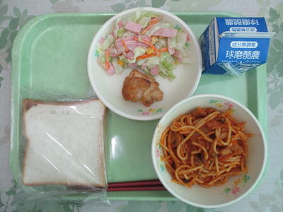 今日は、9月7日(月)に予定していた献立を休校措置により中止となったため、本日実施しました。給食の餃子は焼くことが難しいので、揚げ餃子にします。カリッと揚がった餃子もとてもおいしいです。今日も残食ゼロ!です。※本日より運動会の全体練習日に合わせて、ジューシー(みかん果汁)を5回つけております。