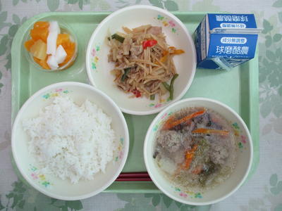 今日は、手作りの肉団子を作りました。市販の団子と間違えるくらいきれいなお団子ができました。また、今日はチンジャオロースもあり、豚肉をたっぷり使って炒め物を作りました。食べ応えのある今日の給食でした。さて、南小学校の子どもたちは、給食の準備や後片付けがとても上手です。お盆も今年度から毎日回収し、調理場で洗浄・消毒しておりますが、各自で洗い、ふきんできれいにふいたものを返却しています。子ども達はコロナ禍に負けず、感染対策をしながら給食を味わって食べています。