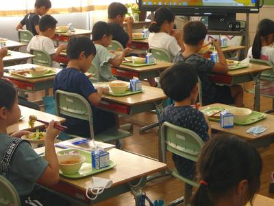 今日は、南小学校は就学時健診でした。そのため、児童はいつもより早い給食スタートでした。準備や会食などが早くできるように献立も子どもたちの大好きなカレーライスにしました。カレーの効果で、みんなあっという間に完食でした。