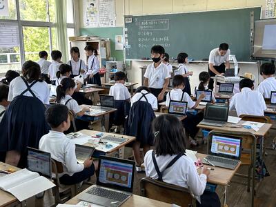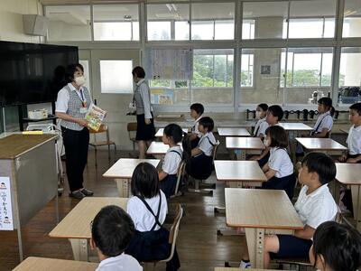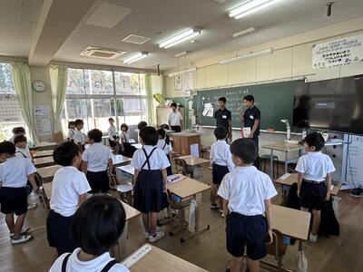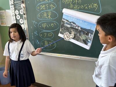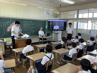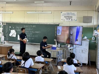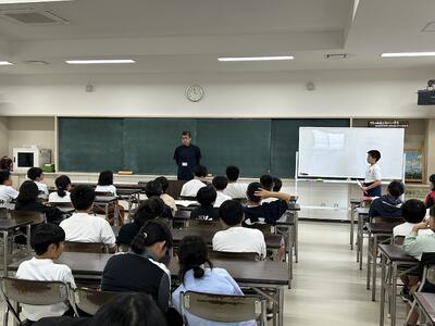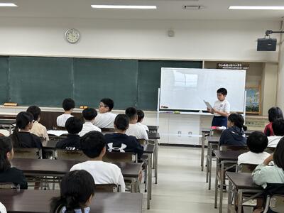 今日は四年社会科の授業に、天草市防災危機管理課の方がご指導に見えました。天草市でのさまざまな取組について教えていただきました。