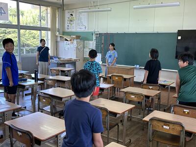 今日は中学生を先生に、佐伊津小のみんなが学習しました。暑い中に参加してくれたみなさん、ありがとう!中学生のみなさん、ありがとうございました!明日もよろしくお願いします!