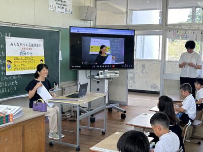 今日は研究授業でだれかと楽しくお話して、なかよしになる方法を学んでいました。先生たちとも話す練習をしたり、友達からのビデオレターを見たり、友達っていいなあ、お話するのっていいなあと感じる授業でした。