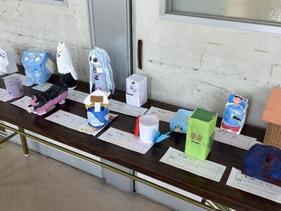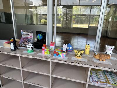 顔合わせ会を見に行く途中で見つけた、昨日みんなが取り組み提出してくれたアイデア貯金箱。