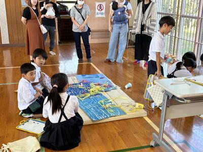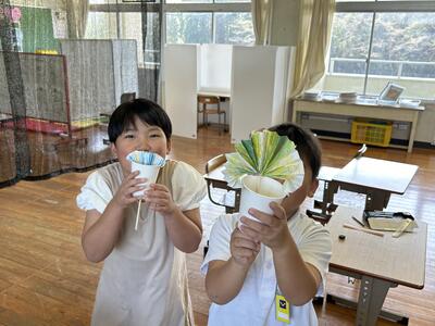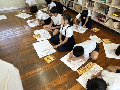 花火を表現。三、四年生が取り組んでいました!
