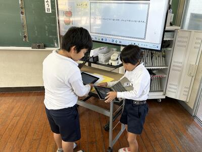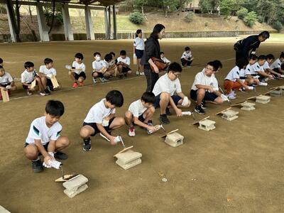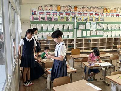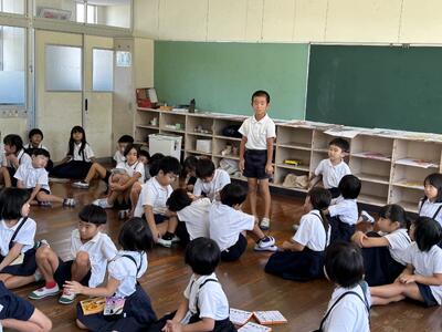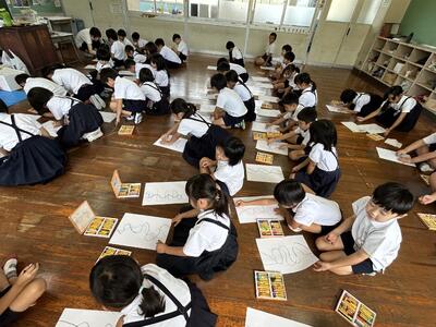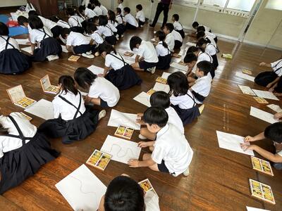 初日は低学年。二年生が一年生に手本を示してくれました。