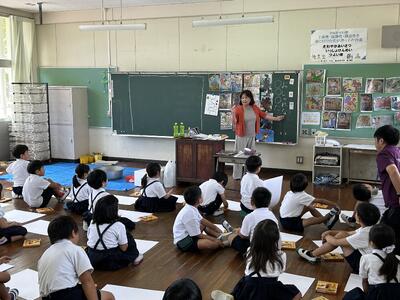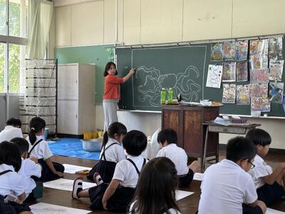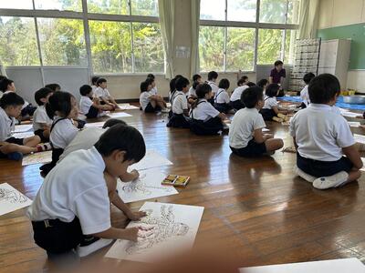 今日は低学年児童は文化展に向け、描画指導を受けました。講師は佐伊津小にいらっしゃった大野先生です。テーマはタコです。生きてるタコを上手に生き生きと表現していました。