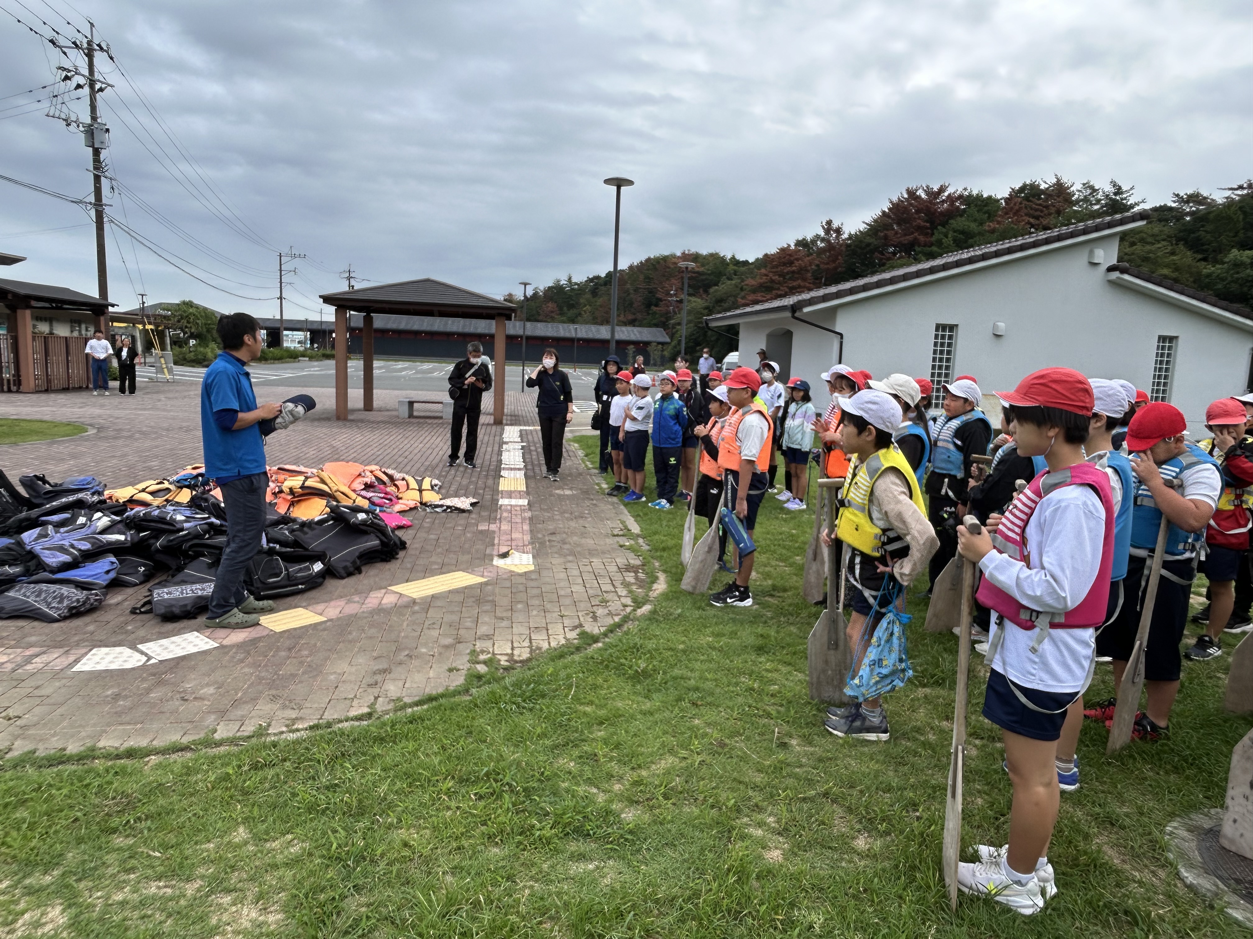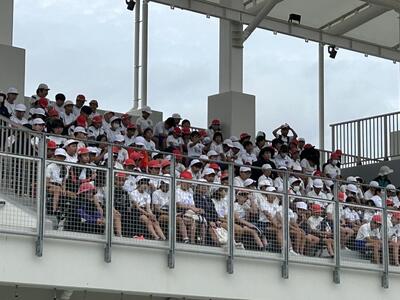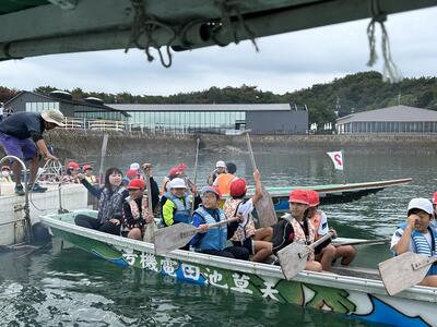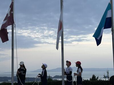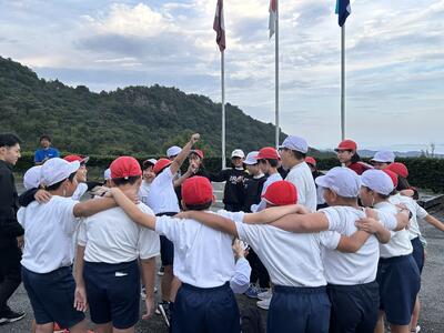 全員そろって素晴らしい天気のもと、5年生の学びのスタート!ペーロンを終えて入所式も終わりました。