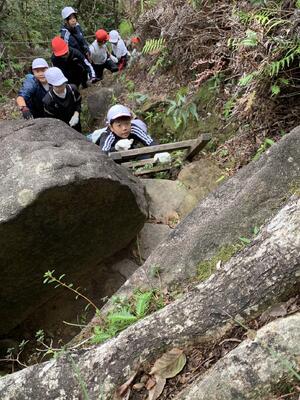午後の最初の活動は山登り。みんな元気にのぼり、無事に下山。頑張りました。かなりのハードなコースでした。