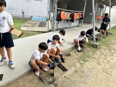 金曜日、午後から高学年児童、保護者有志の皆様、職員により、相撲場の準備が行われました。暑い中、水分補給を繰り返しながら頑張った高学年のみなさん、大変でしたね。