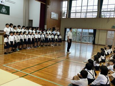 1学期、71日の学校生活、161人みんなが頑張りました。暑さの為オンラインで行った終業式、今日は残念ながら全員揃って式を行うことは叶いませんでした。みんなが頑張り素晴らしい1学期になりました。先生方、お家の方々、児童のみなさん、本当にありがとうございました。40日の夏休み、元気に楽しく安全に過ごしてください。
