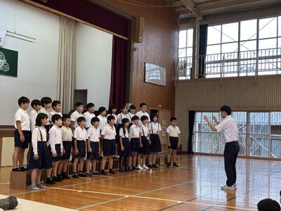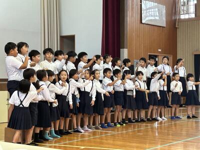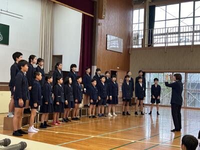 六年生はとっくにスタートしていますが、在校生が練習スタートしました。五年生の目標発表からスタート!六年生を全校でしっかり送りましょう!卒業式は学年最後の授業!学年の学びがみんなで実感できるような卒業式にしましょう!