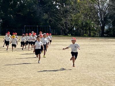 今日はなかよし2組のみんなが凧上げをしました。風があまり吹いていませんでしたが、楽しく活動していました。