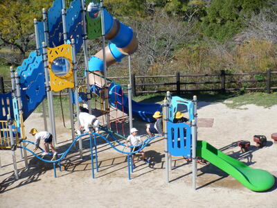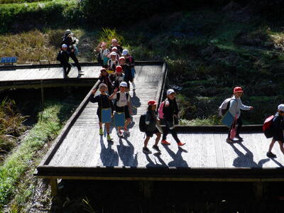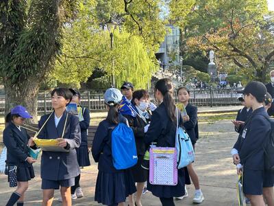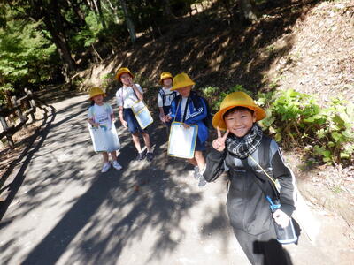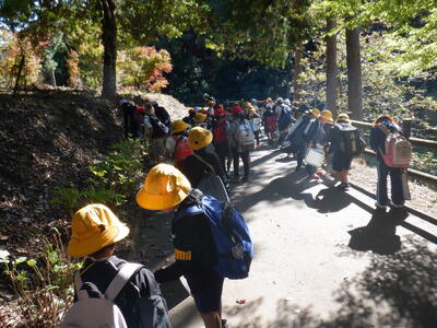 低学年が初めてのお出かけ。学校を飛び出して、西の久保公園へ秋を探しに出かけました。