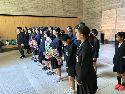 語り部の方のお話を聞き、いまから平和祈念集会です。六年生は事前に準備したことをいかししっかり参加しています。