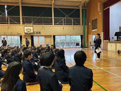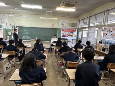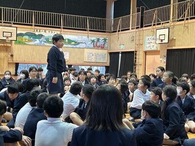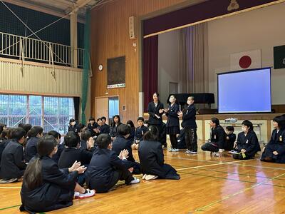 今日は午後から六年生は本渡中体験入学に行きました。初めての本渡中学校はどのように映ったでしょう。生徒会長のお話は素晴らしかったですね。みなさんもあのように立派になっていくのかと思うと楽しみになりました。校舎見学。理科室は3つありました。素晴らしい校舎、素晴らしい先生方、素晴らしい先輩方、素晴らしい伝統、本渡中学校入学を楽しみに入学してください!