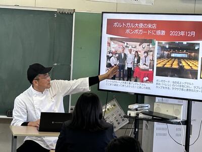 今日は地域のおいしいスイーツ屋さんのえすぽるとさんの明瀬さんにご来校いただき、5年生にお話をしていただきました。えすぽるとさんには、ポルトガル大使館の方がいらしたとのこと。おいしいお菓子を気に入られたという話を伺い、とてもうれしく、誇らしく感じました。すてきなお店が地域にあることに気づいたことでしょう。貴重なお話ありがとうございました!