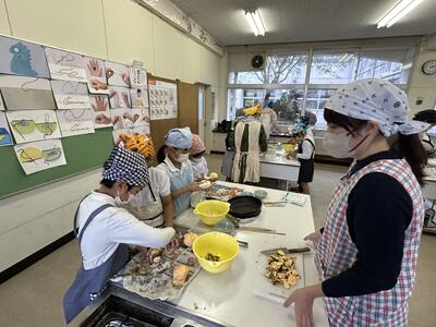 いま、佐伊津小では収穫祭が続いています。畑で収穫したさつまいもを使っておいしい芋料理を作り食べる楽しみな収穫祭。金曜日は午後、2年生がおいもパーティーを行っていました。たくさんのお家の方々にお手伝いいただき、子どもたちも大喜びでした。ありがとうございました!