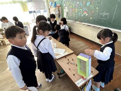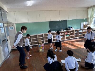 今日は、佐伊津町振興会を中心に、27人の地域の皆様方に来校いただき、昔あそびを教えていただきました。1年生と2年生が参加させていただきました。竹馬、凧上げ、けん玉、ちょんかけごま、おじゃめ、羽付き、他にもたくさんの遊び場を用意してくださいました。終わりの会では、子供達からまた来てください、昔あそびをもっとやりたいなど、たくさんの感想が述べられました。ありがとうございました!