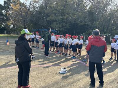 今日はなかよし2組のみんなが凧上げをしました。風があまり吹いていませんでしたが、楽しく活動していました。