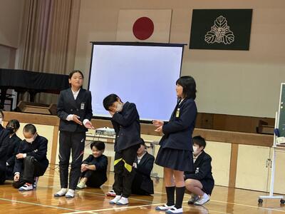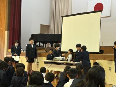 12月17日、2校時、これまでの人権旬間の学びを交流する人権集会を行いました。各学級の取組の発表のあと、友達を知る、増やすゲームを行い交流を深めました。