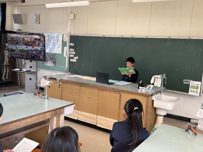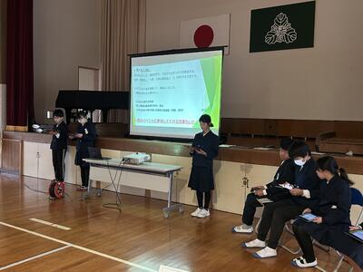 「地球温暖化」「平和」など自分で選んだテーマについて資料を効果的に使いなから考えを述べました。