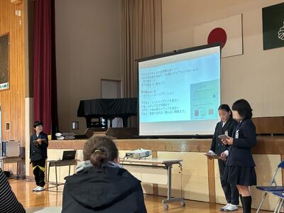 12月17日、午後は佐伊津小教育会議を行いました。6年生全員と学校運営協議会の皆様による会議です。児童の取組について、たくさんのご意見やアドバイスをいただきました。6年生の報告の様子をオブザーバーとして参加した5年生が、委員の皆様のご意見をいかし、さらによりよい佐伊津小を目指していくと考えています。本日は大変寒い中にありがとうございました。