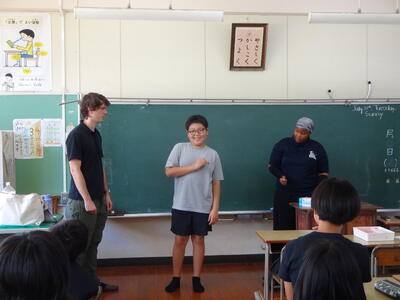7月30日、本日14人の4~6年生の参加があり、3人のALTの先生方と英会話教室を行うことができました。14人の児童のみなさん、参加してくれてありがとうございました。英語の勉強では学んだことを使うこと、それが必要であると感じました。ALTの先生方ありがとうございました。