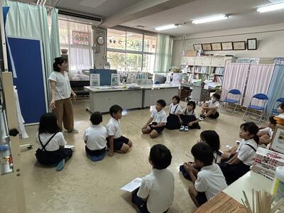 初日は低学年。二年生が一年生に手本を示してくれました。