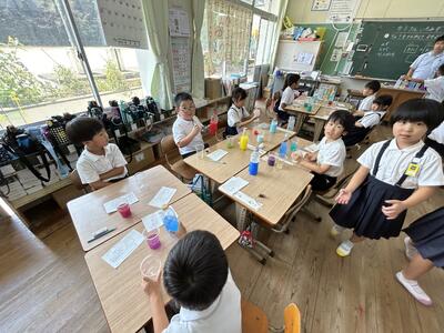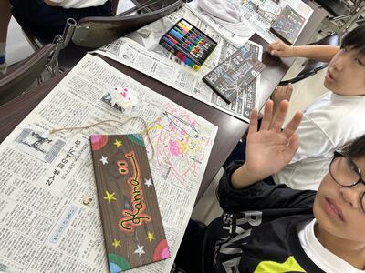 花火を表現。三、四年生が取り組んでいました!