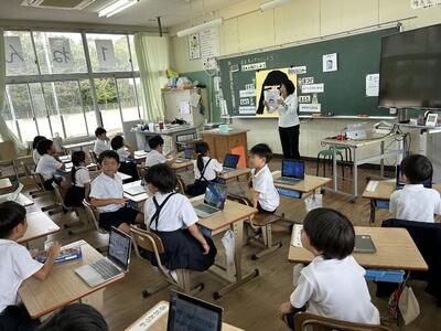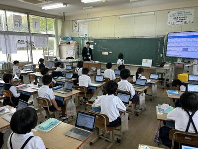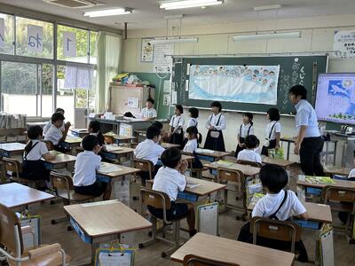 今日は四年社会科の授業に、天草市防災危機管理課の方がご指導に見えました。天草市でのさまざまな取組について教えていただきました。