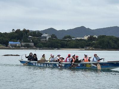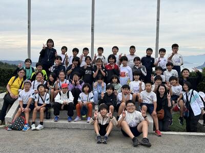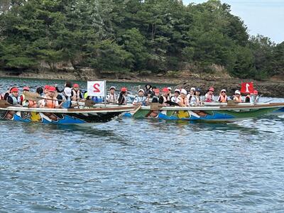 全員そろって素晴らしい天気のもと、5年生の学びのスタート!ペーロンを終えて入所式も終わりました。