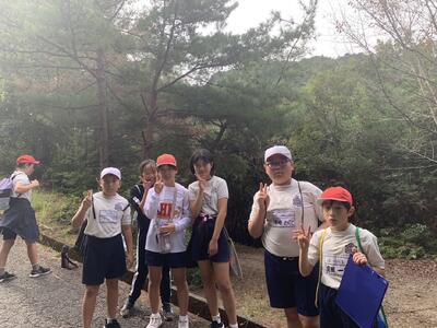 午後の最初の活動は山登り。みんな元気にのぼり、無事に下山。頑張りました。かなりのハードなコースでした。