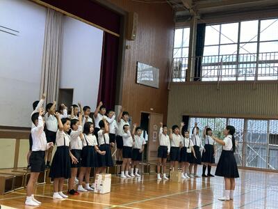 六年生はとっくにスタートしていますが、在校生が練習スタートしました。五年生の目標発表からスタート!六年生を全校でしっかり送りましょう!卒業式は学年最後の授業!学年の学びがみんなで実感できるような卒業式にしましょう!